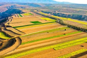 2023年3月18日,航拍山西省运城市夏县庙前镇西村,宽阔通村油路、平展黄土田园…
