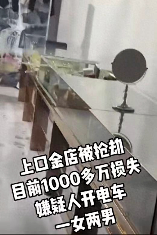 中军创官网讯 文章来源: 图文(北青网 大象新闻记者 刘宜昕 ) 11月29日上午,有网友发视频称,山东省寿光市上口镇一家金店被抢劫,视频中的字幕信息指出,该金店遭受的损失可能超过1000万元人民币,并提及犯罪嫌疑人驾驶电动车逃离,涉案人员为两男一女。